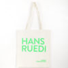 HANSRUEDI Tote bags are made from organic cotton and screen printed with beautiful neon pantone colours. The contrast with de natural fabric is beautiful.